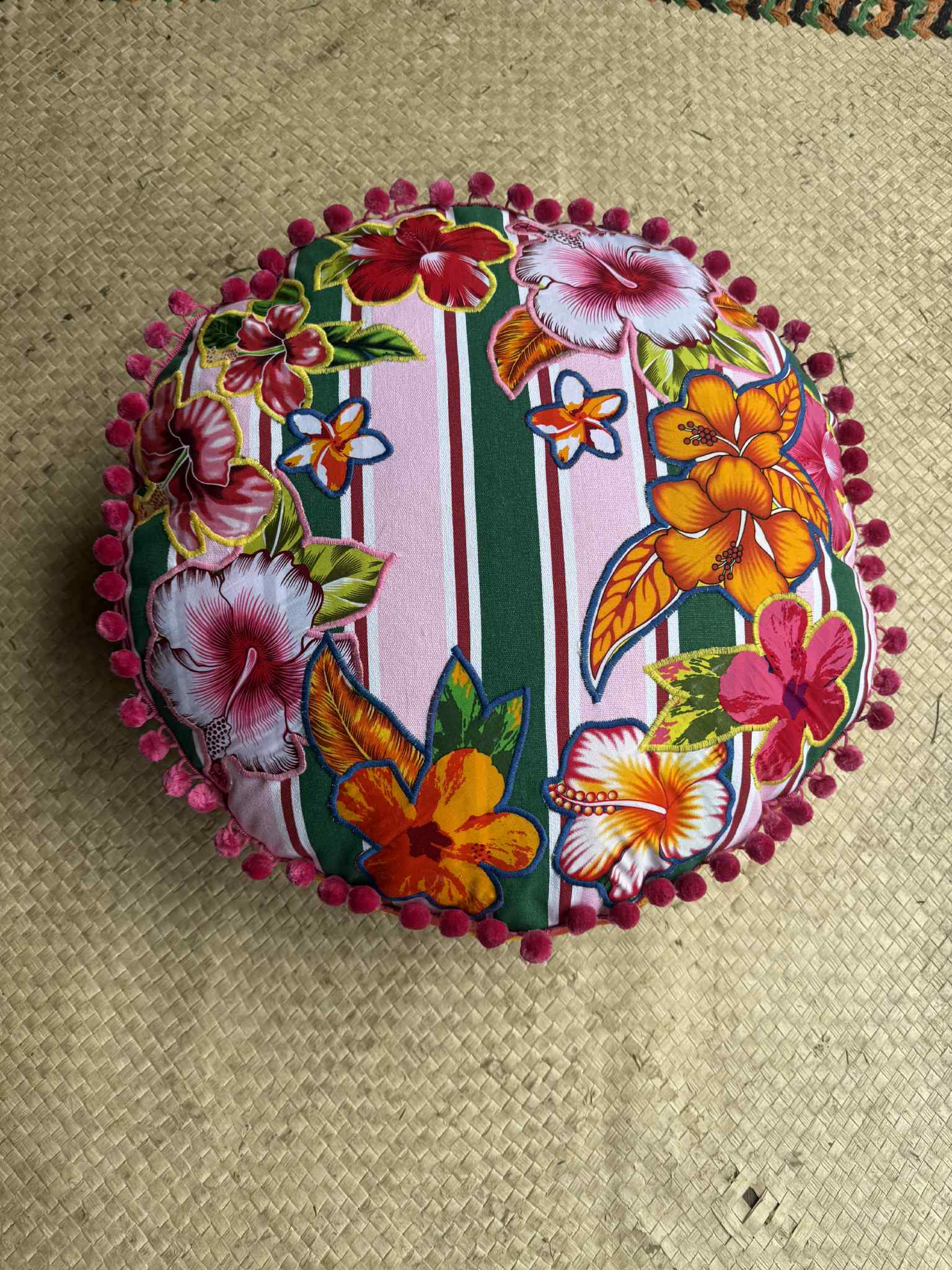 Perfect Artpop on a bed. Showcasing orange and yellow sides and a lime green woollen backing. Hot pink bobbles.